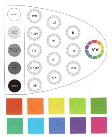 중명도,고채도를 이루는 비비드톤과 스탠다드톤은 가장화려한 톤으로 활동적이고 강렬한 이미지를 주고