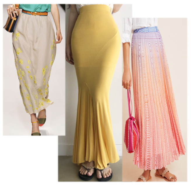 맥시 스커트는 상하체의 비율을 확실하게 보여주는 기장으로