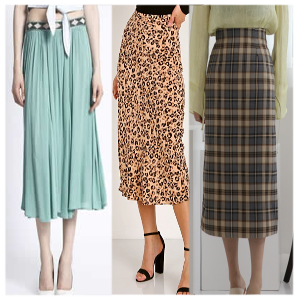 무릎과 발목의 중간라인 (종아리라인)의 스커트는