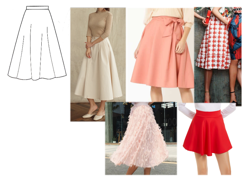 서큘러 스커트 (circular skirt) 풀스커트(full skrt)가 있으며,