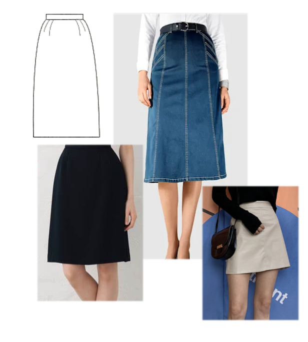디테일에 따라 고어드스커트, 개더스커트등 다양하게 표현할 수 있습니다.